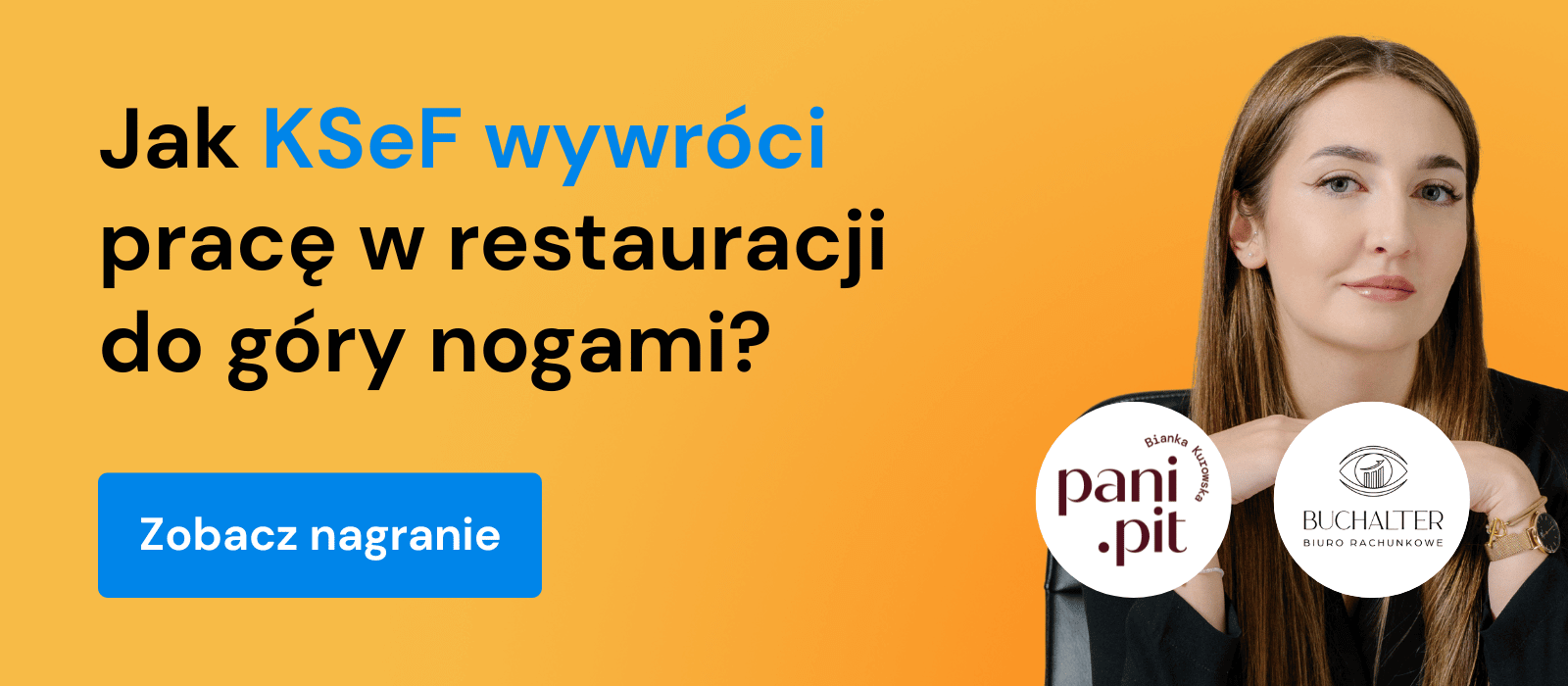 Chcesz wiedzieć więcej o praktycznych aspektach wdrożenia KSeF? Obejrzyj darmowy webinar „Jak KSeF wywróci pracę w restauracji do góry nogami?”, w którym Bianka Kurowska – księgowa z ponad 10-letnim doświadczeniem i autorka profilu pani.pit wyjaśnia, co nowe przepisy oznaczają dla codziennej pracy lokalu.